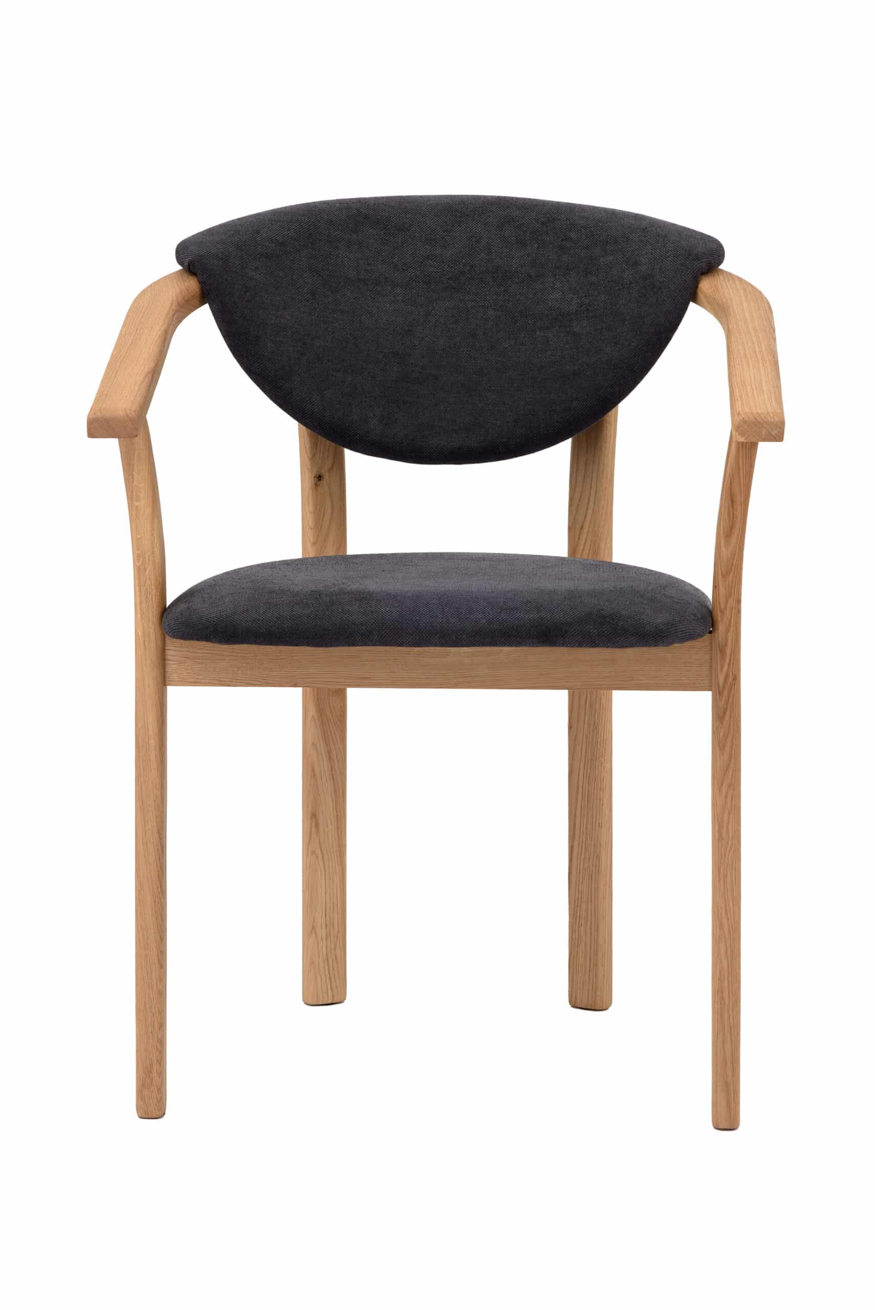 Dřevěná židle Alexis zaujme na první pohled svým čistým a vzdušným designem. Kombinace masivního dubového dřeva a jemně zaoblených linií působí lehce, přitom však stabilně a pevně. Konstrukce s plynule navazujícími područkami vytváří harmonický celek, který skvěle doplní moderní i skandinávsky laděný interiér. Černé čalounění dodává židli sofistikovaný a výrazný vzhled, který působí elegantně a zároveň velmi univerzálně. Snadno jej sladíte s různými materiály i barevnými kombinacemi.