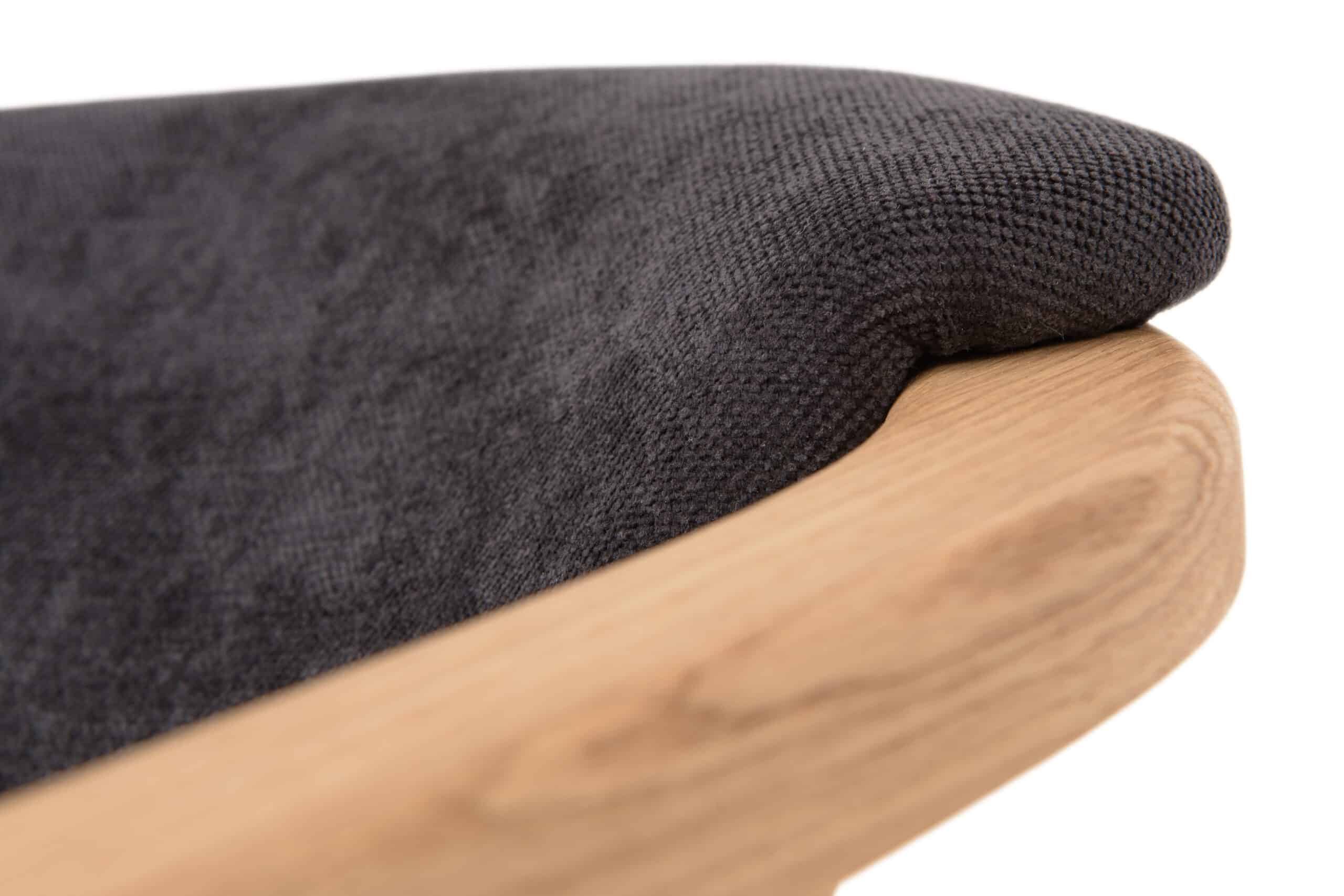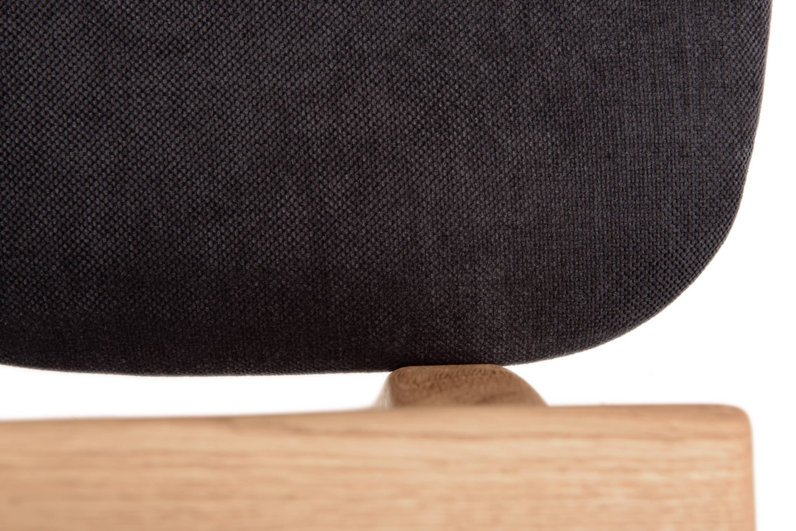 Sedák i opěrák jsou měkce polstrované a potažené kvalitní černou látkou, která je příjemná na dotek a praktická na údržbu. Ergonomicky tvarovaný opěrák poskytuje spolehlivou oporu zádům, zatímco područky zvyšují celkový komfort při sezení. Zároveň slouží i jako praktická opora při vstávání. Židle je ideální nejen pro krátké posezení, ale i pro delší chvíle strávené u stolu.