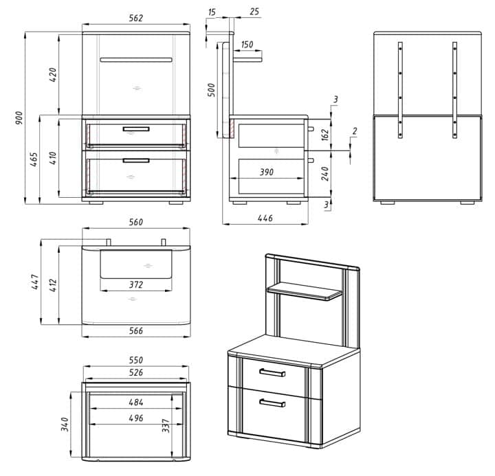 - Vnitřní rozměr horního šuplíku: 48 x 32 x 10 cm