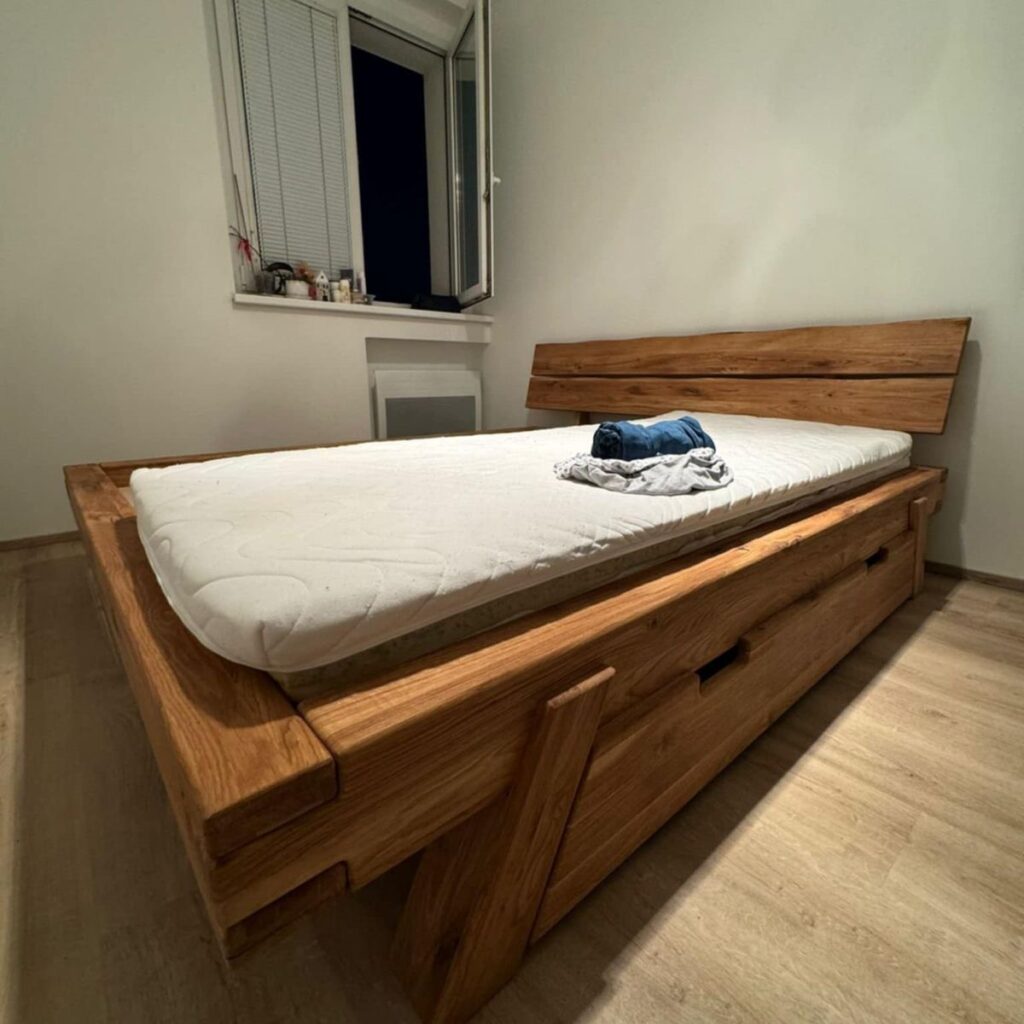 Dřevěná postel Oslo je v neposlední řadě také praktická z pohledu úložného prostoru, je k ní totiž možné přiobjednat snadno výsuvné šuplíky, do kterých schováte například ložní prádlo, v létě třeba nadbytečné přikrývky.