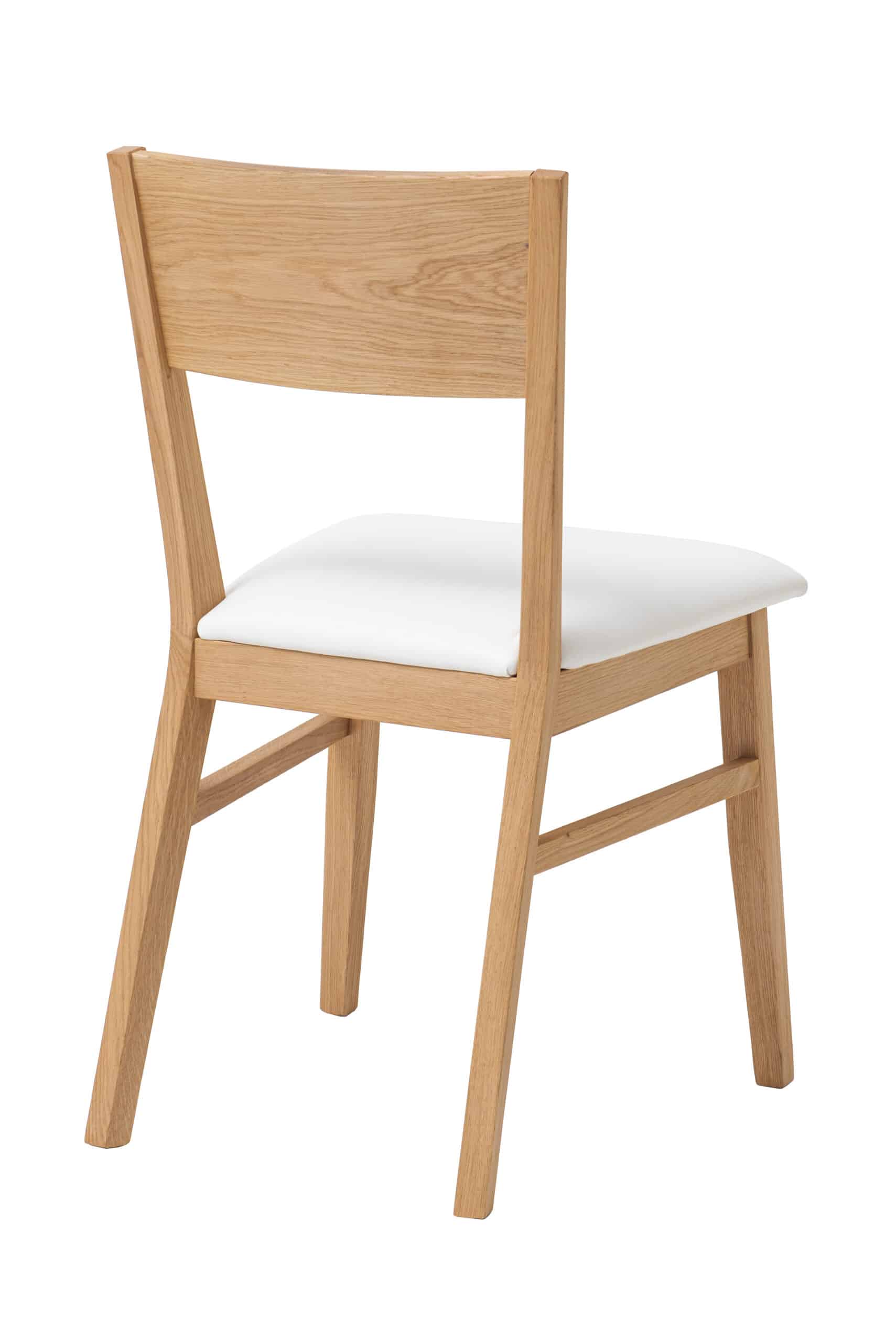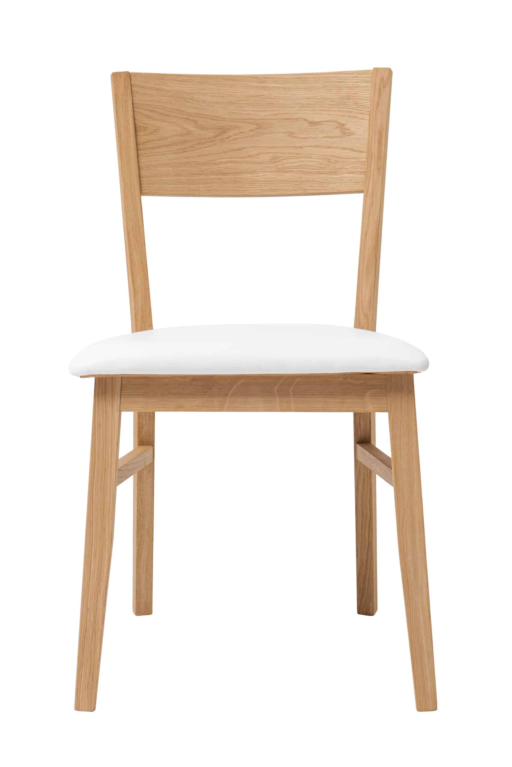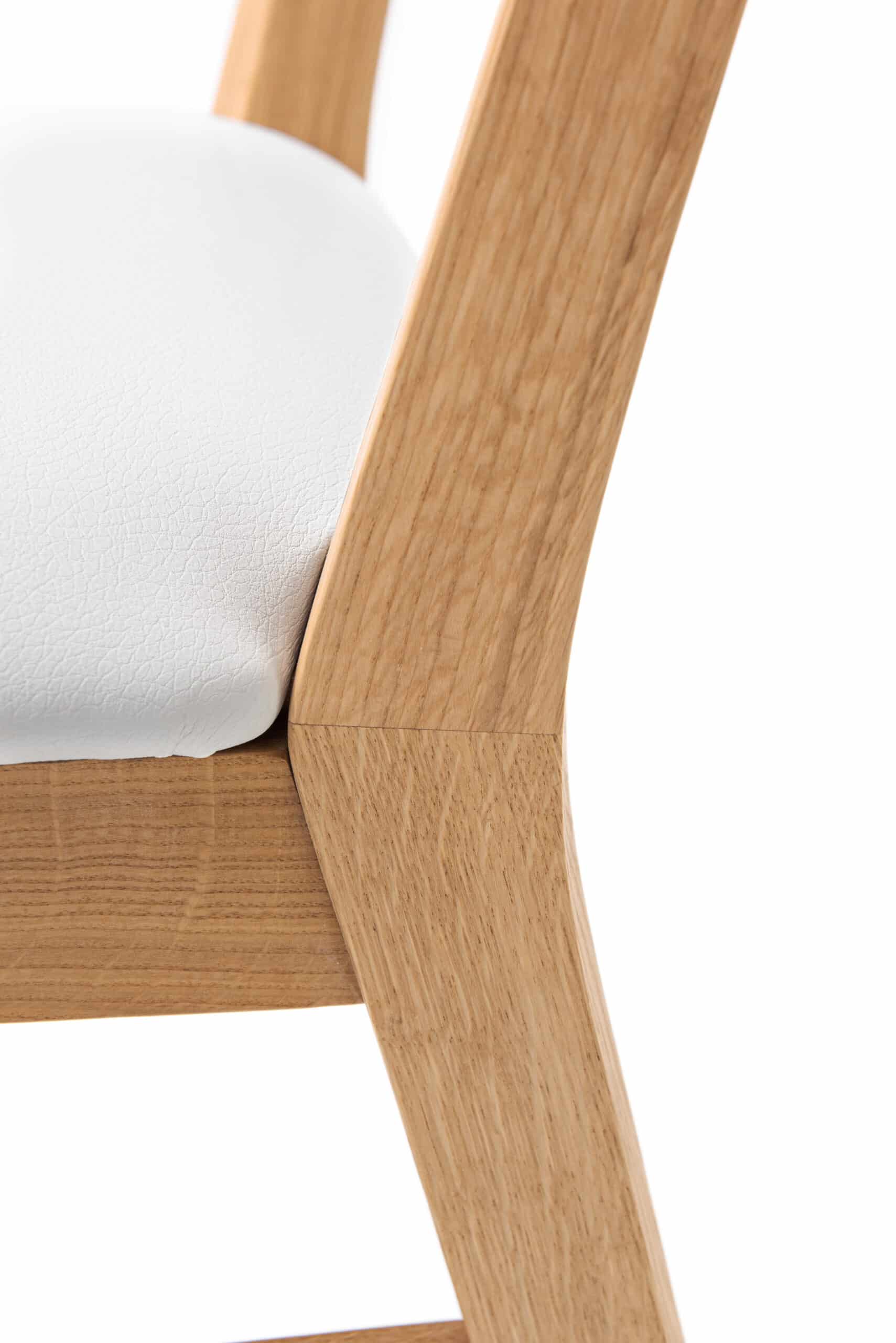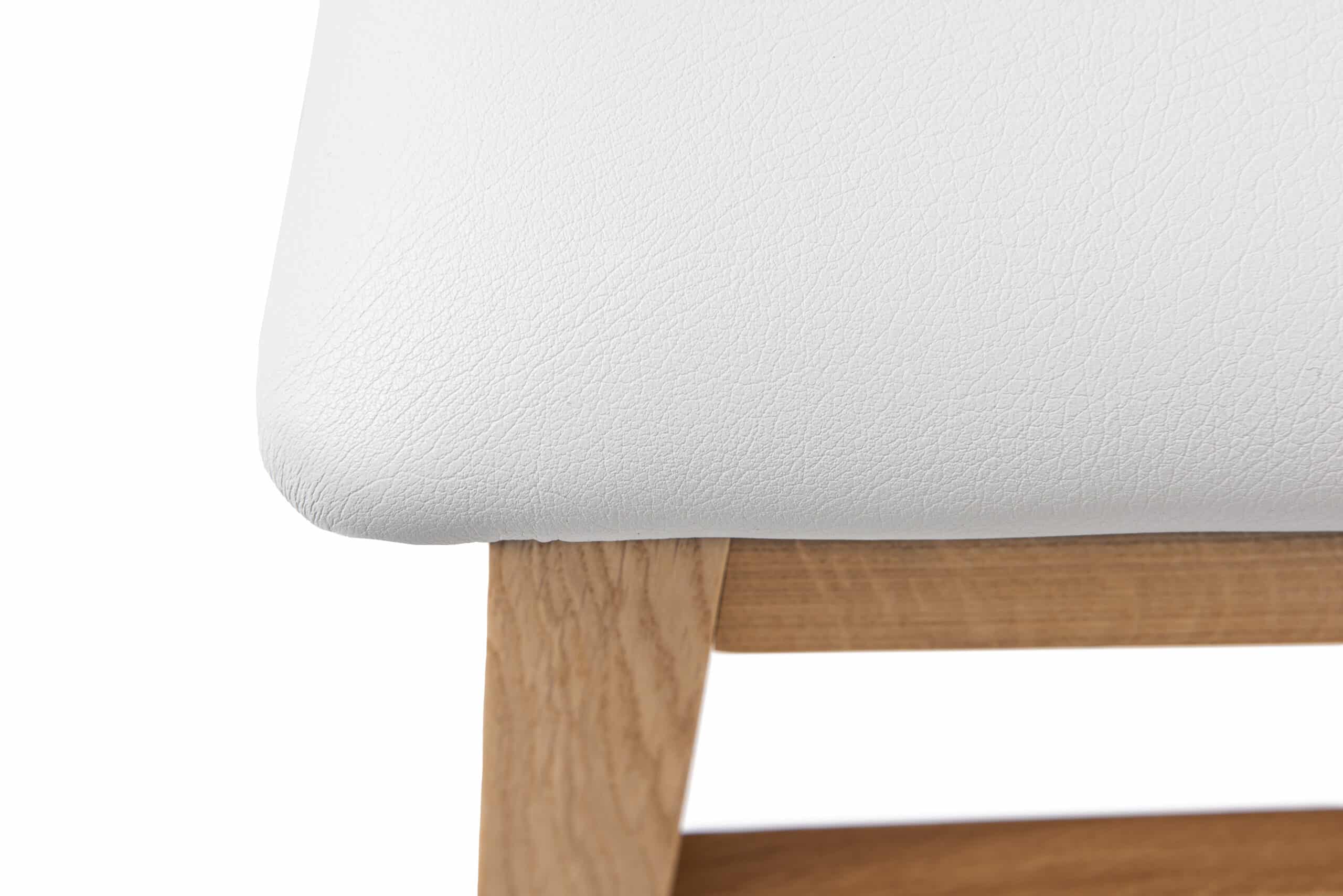 Židle Mika, masivní dub, polstrovaná, bílá koženka, olejovaná a voskovaná, dřevěný nábytek.