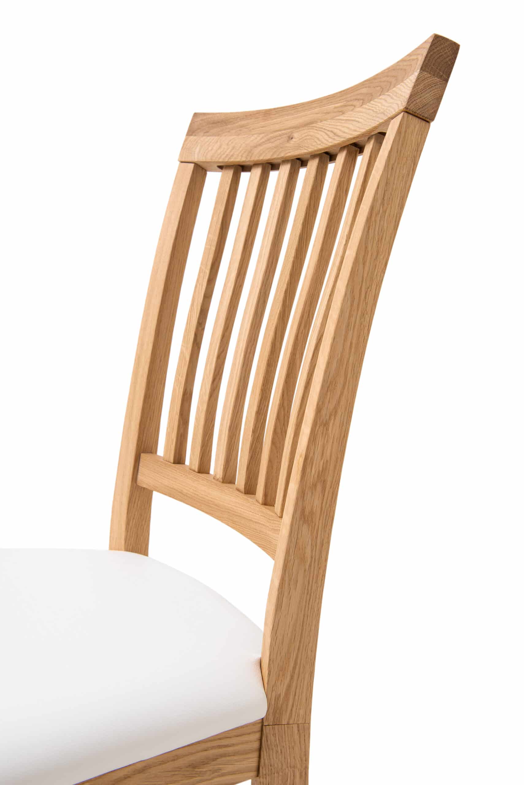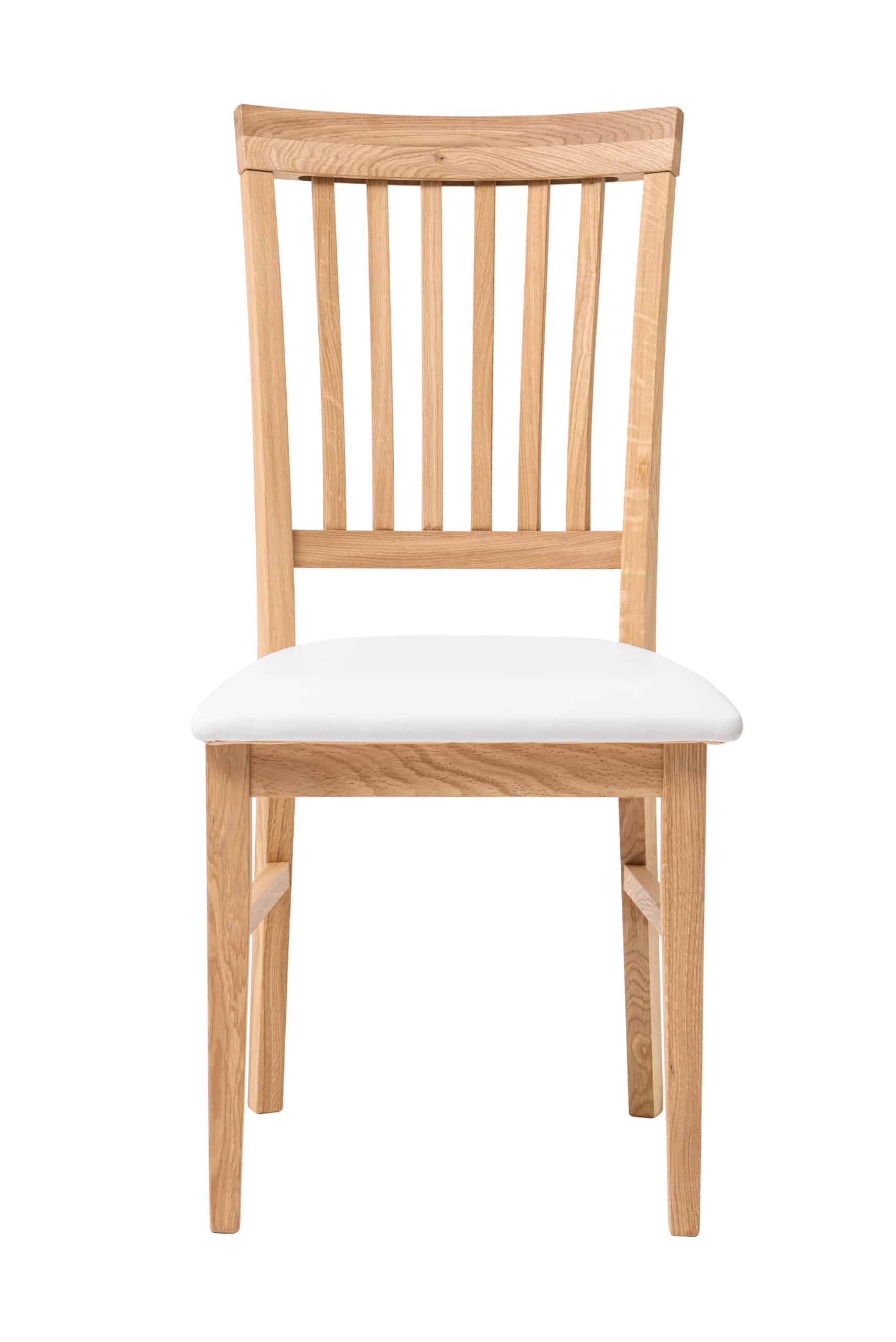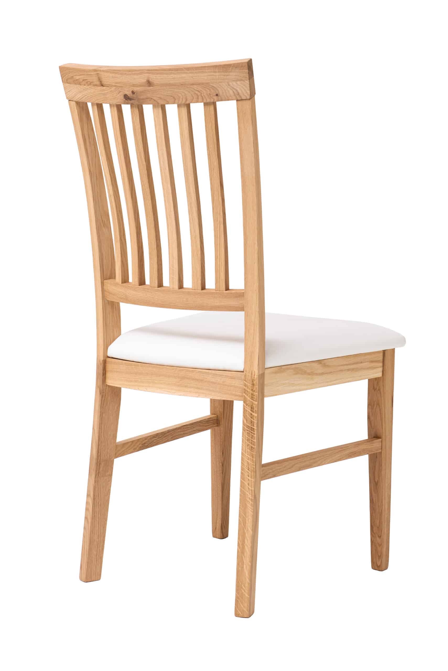 Nabízíme Vám exkluzivní jídelní židli s bílým polstrovaným sedákem, která je vyrobena z masivního dubu v olejovaném provedení v kombinaci s voskem.