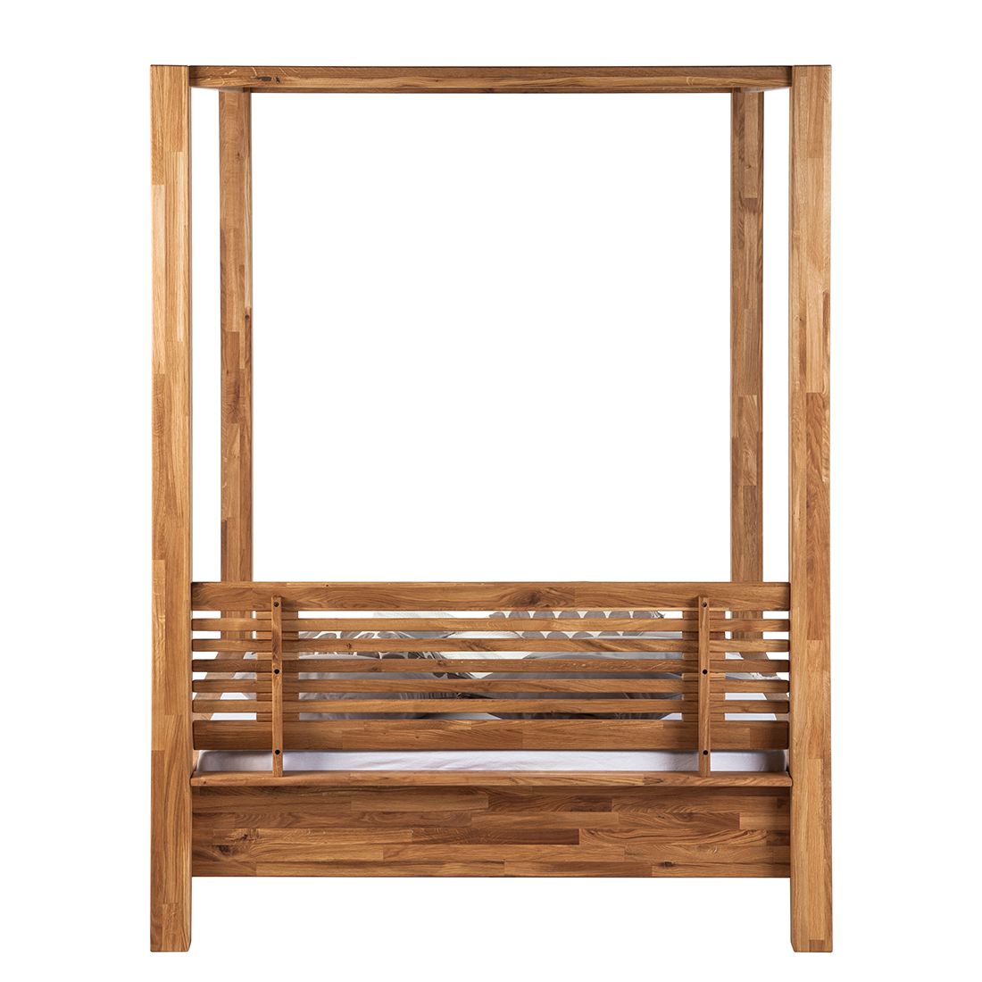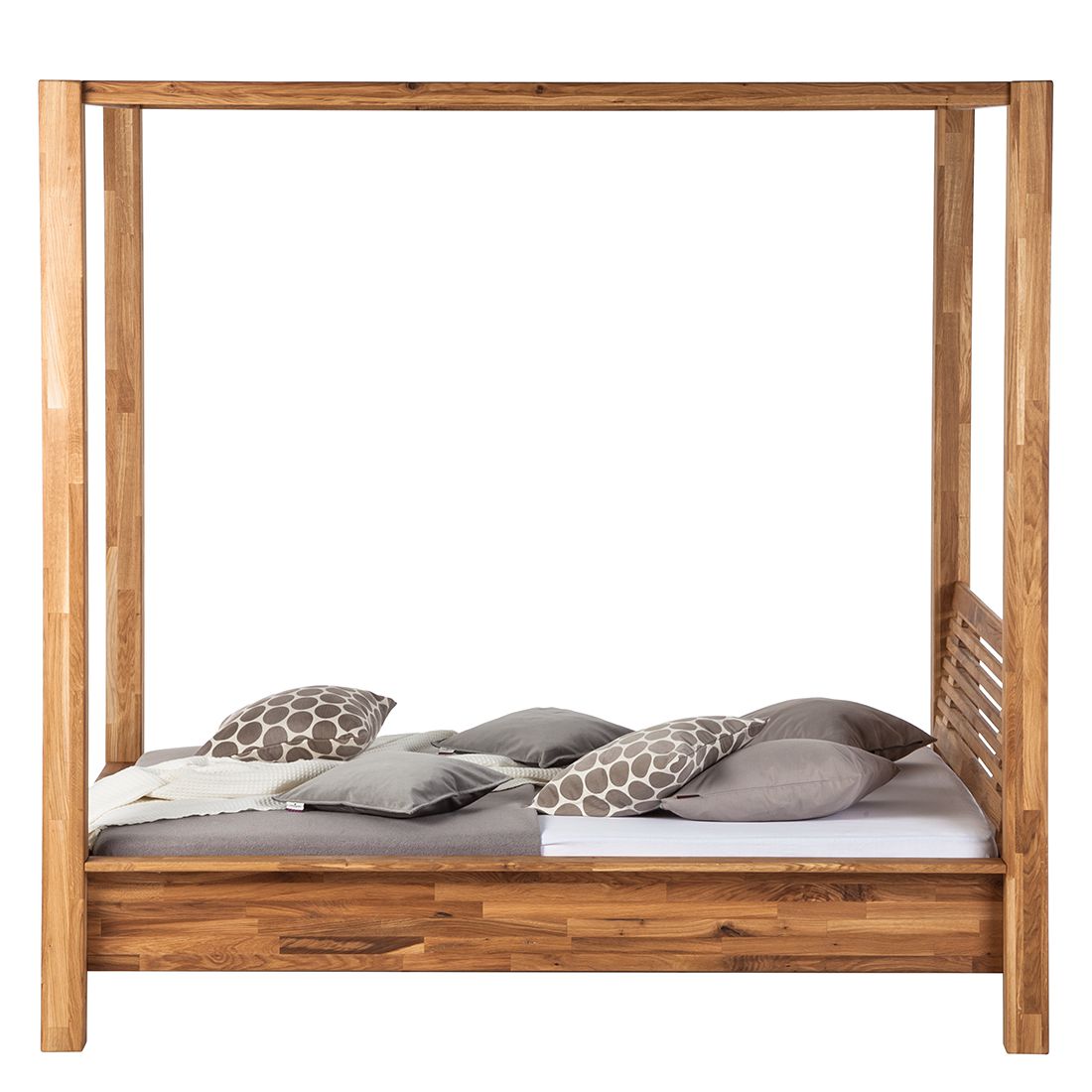 Stylová postel z masivního dubu s možností závěsů pro útulnou ložnici snů