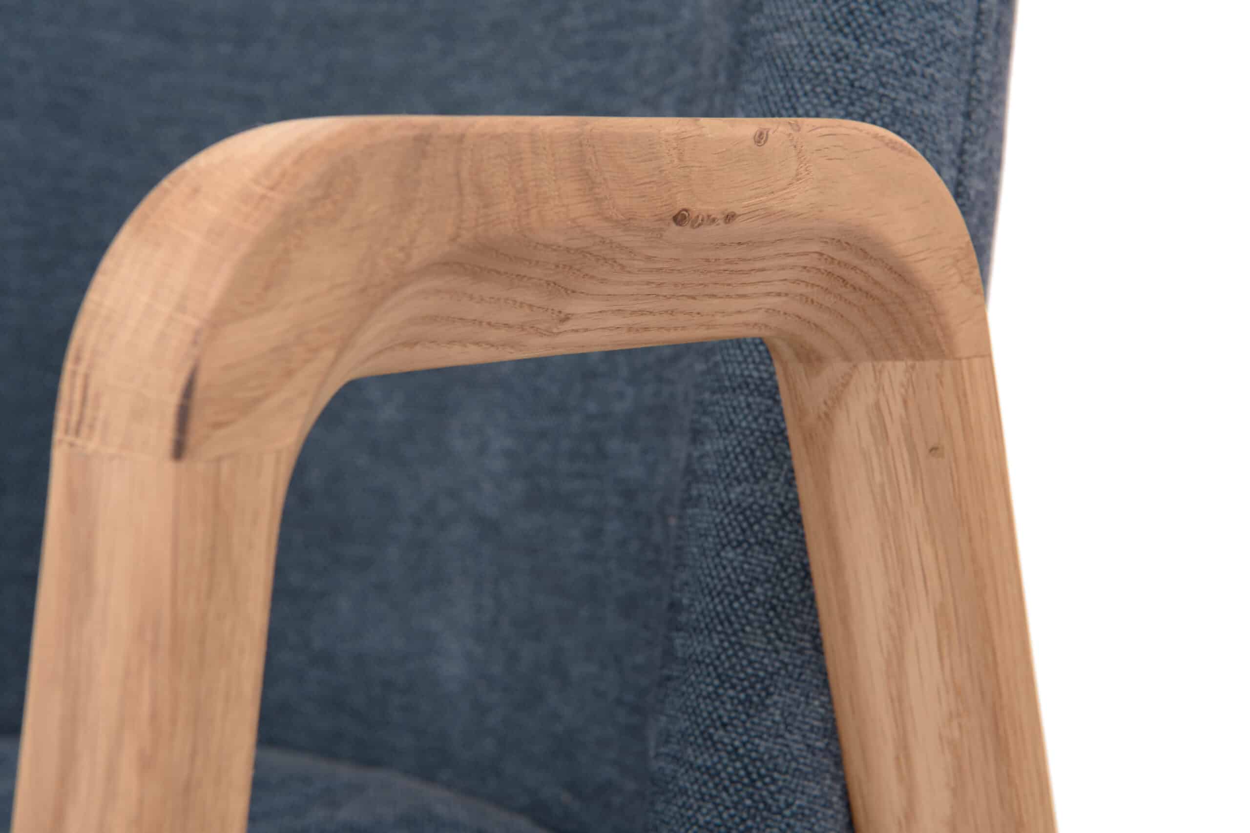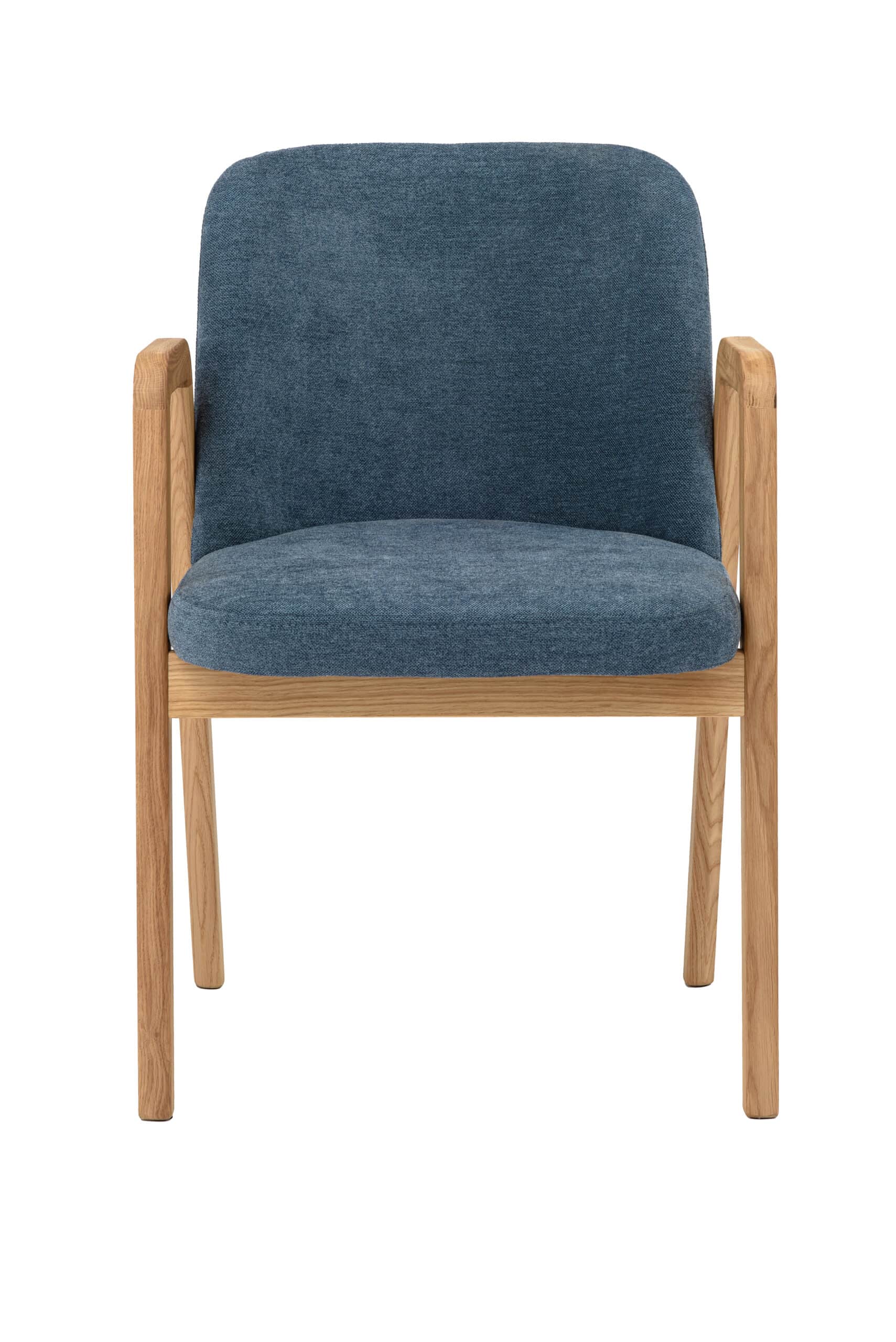 Dubová židle Chill s područkami v modrém provedení představuje dokonalé spojení moderního designu, kvalitních materiálů a vysokého komfortu. Elegantní linie a harmonická kombinace masivního dubového dřeva s čalouněním z ní dělají stylový doplněk do každého interiéru.
