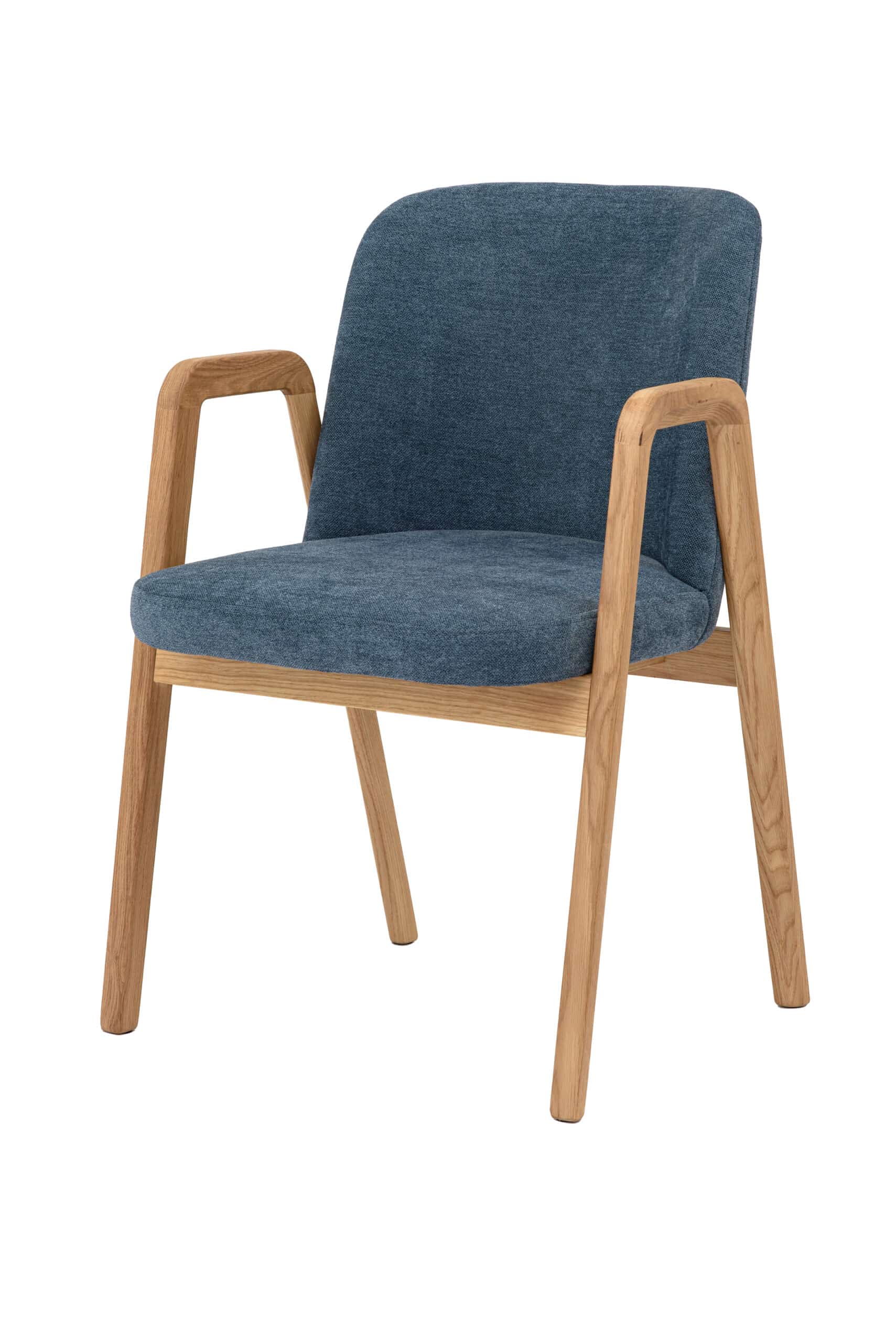 Dubová židle Chill se hodí nejen k jídelnímu stolu, ale také do pracovny, kanceláře nebo stylového komerčního prostoru. Masivní dubové dřevo zaručí dlouhou životnost, kvalitní modré čalounění příjemné posezení a područky ještě větší komfort při vstávání i sezení.