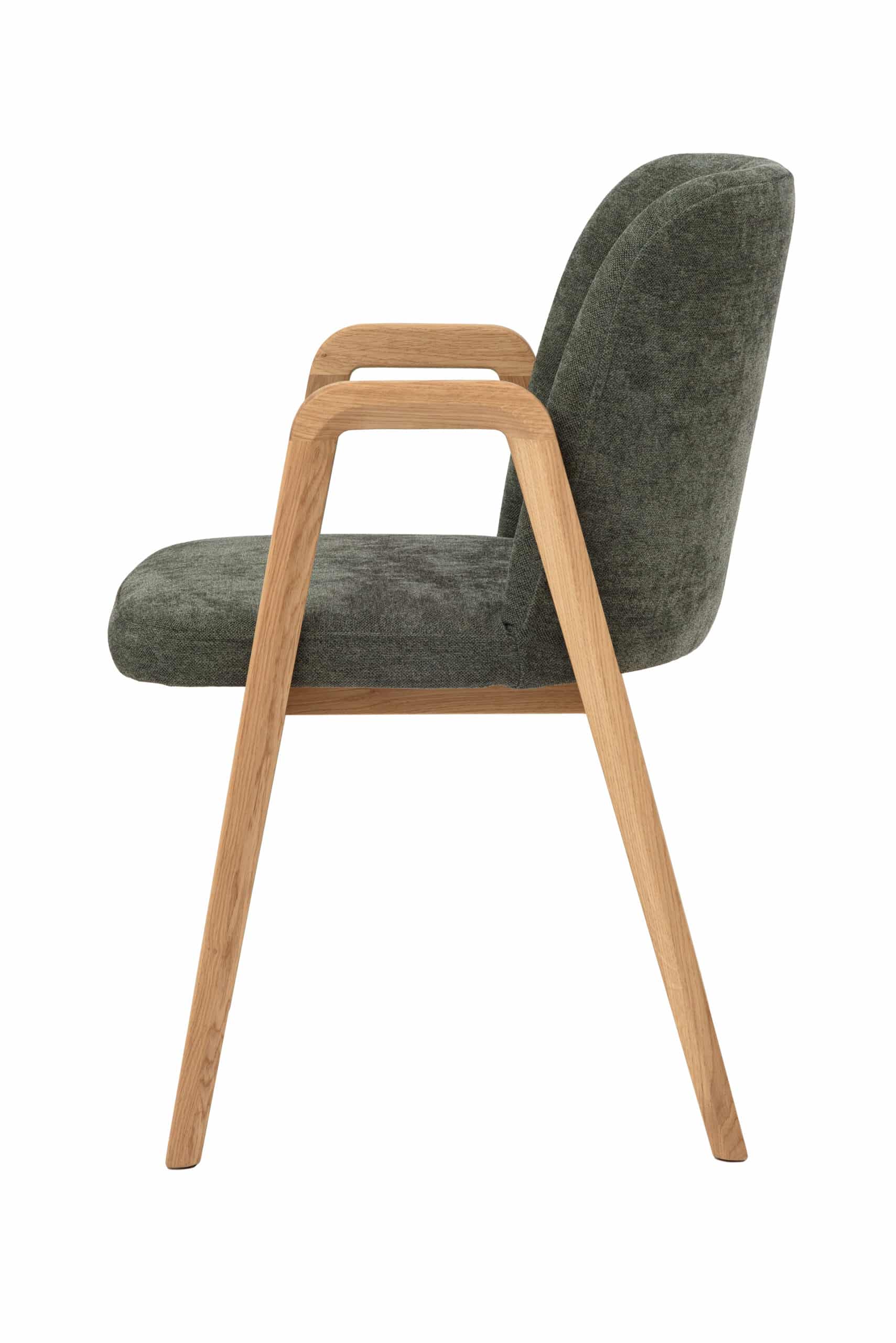 Praktické područky z masivního dubu zvyšují komfort při sezení a zároveň usnadňují vstávání. Jejich elegantní tvar navazuje na celkový design židle a podtrhuje její lehký, vzdušný vzhled.