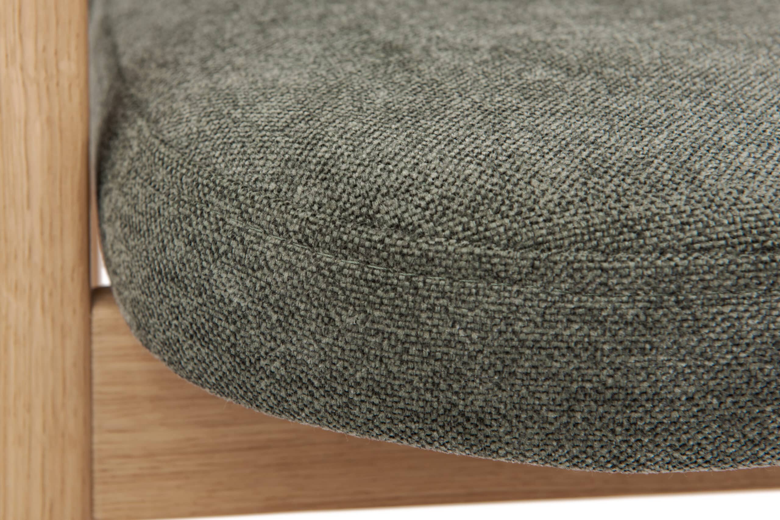 Výrazným prvkem je zelené polstrování, které židli dodává svěží, přírodní a elegantní vzhled. Příjemná potahová látka je měkká na dotek, odolná při každodenním používání a vytváří útulnou atmosféru. Zelený odstín vnese do interiéru klid, harmonii a nádech přírody, přičemž se skvěle kombinuje se světlým dřevem, neutrálními tóny i moderním vybavením domácnosti.