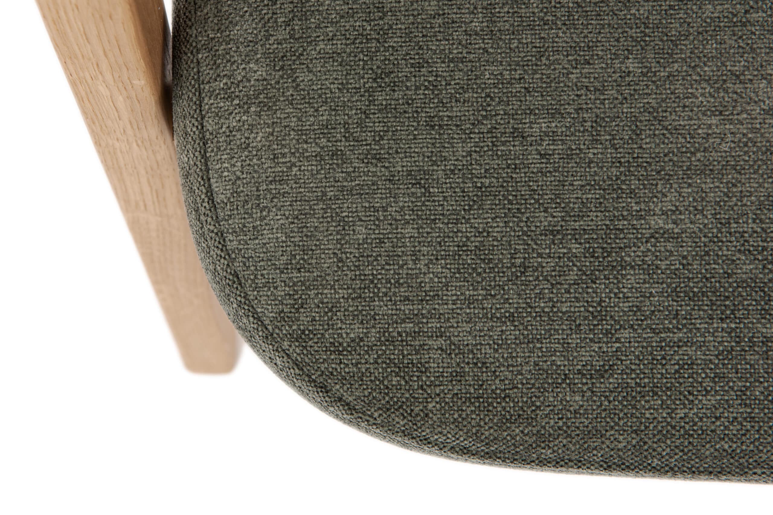 Dubová židle Chill s područkami v zeleném provedení představuje dokonalé spojení moderního designu, kvalitních materiálů a vysokého komfortu. Elegantní linie a harmonická kombinace masivního dubového dřeva se zeleným čalouněním z ní dělají stylový doplněk do každého interiéru.