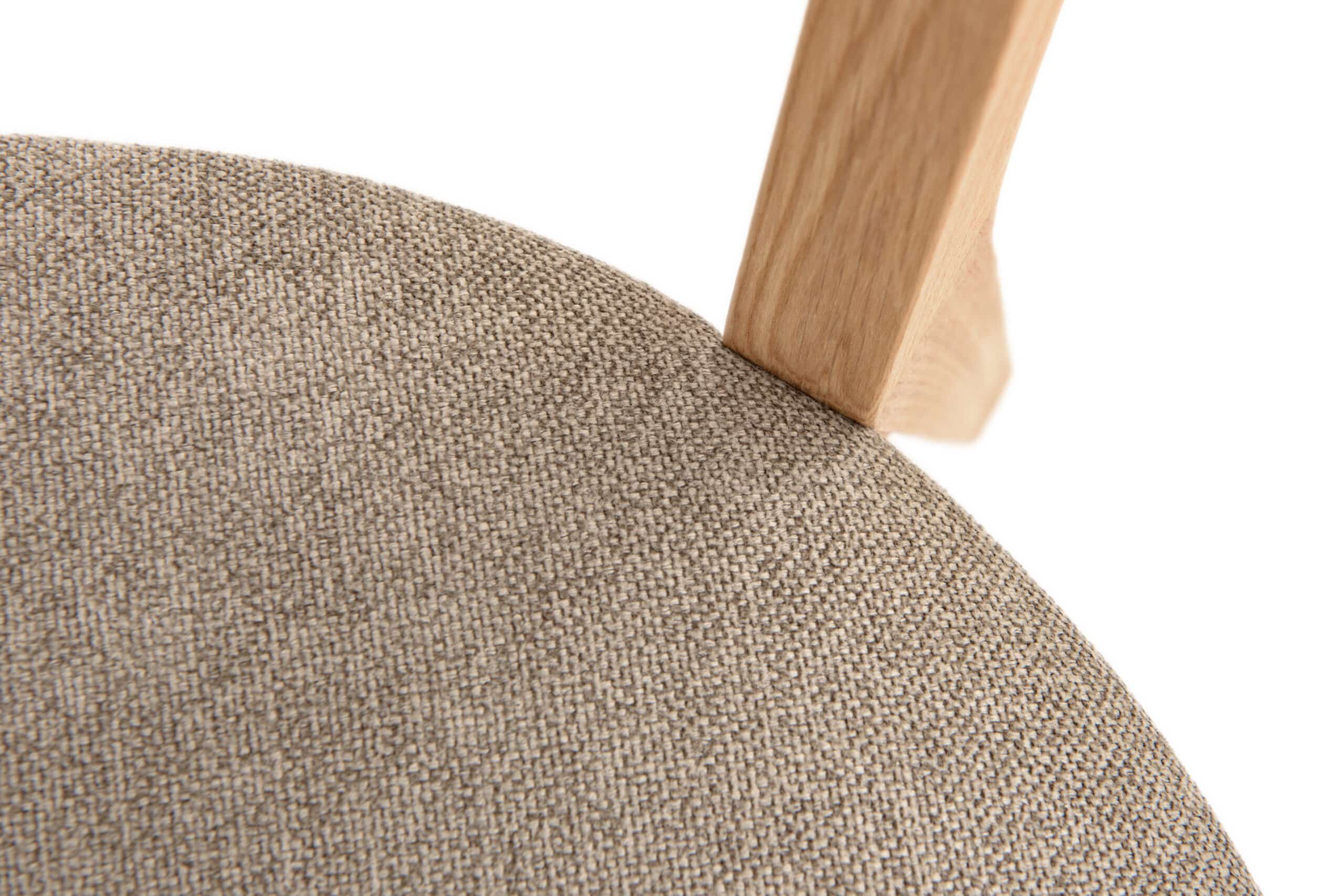 Sedák židle je měkce polstrovaný a potažený kvalitní látkou v elegantním hnědém odstínu. Tento přírodní tón působí klidně a útulně a skvěle ladí s dřevěným nábytkem i neutrálními barvami interiéru. Hnědý potah je praktický na údržbu, příjemný na dotek a vhodný pro každodenní používání v domácnosti.