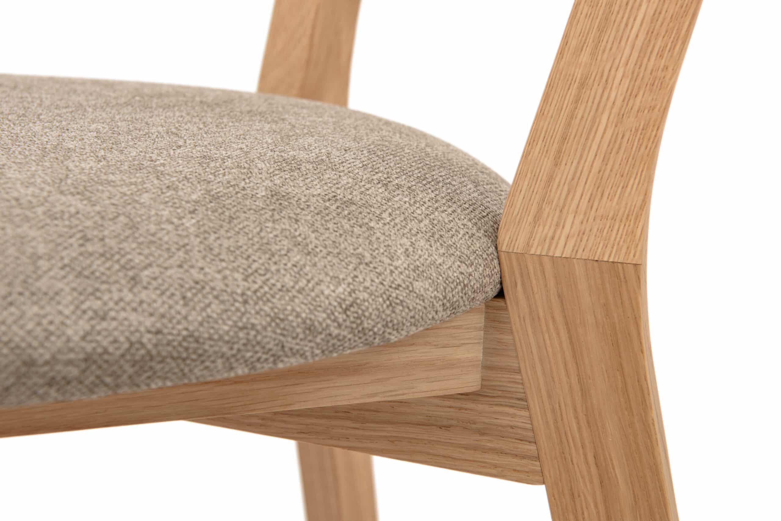 Konstrukce židle je vyrobena z pečlivě vybraného masivního dubu, který je známý svou vysokou pevností a odolností. Díky tomu je židle stabilní a ideální pro každodenní používání v domácnosti. Povrchová úprava olejem a voskem chrání dřevo před opotřebením a zároveň zvýrazňuje jeho přirozenou strukturu a teplý odstín.