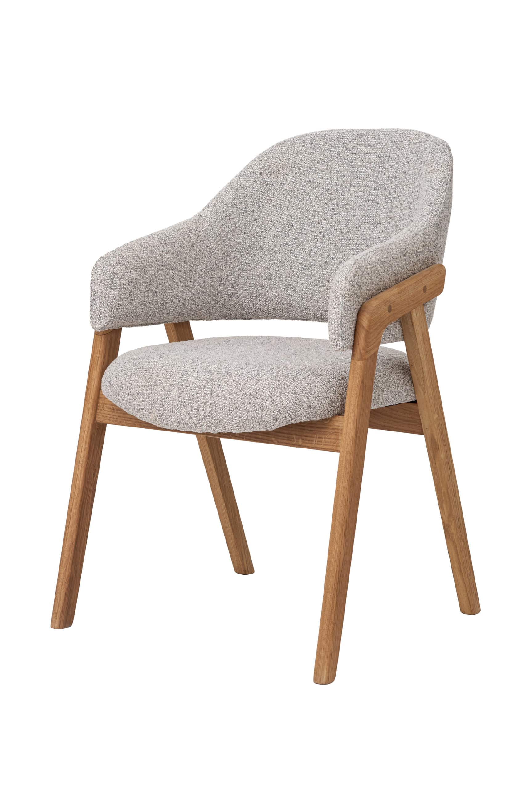 Křesílko Clara spojuje kvalitní dubový masiv s výrazně strukturovaným textilním potahem v odstínech světle šedé, doplněným jemnou antracitovou nití. Tkaná textura s jemnými tóny vytváří elegantní a uklidňující atmosféru. Dopřejte si komfortní a stylové sezení, které promění každý prostor v místo, kam se budete rádi vracet.