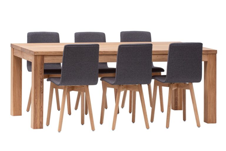 Masivní dubový jídelní set Korund-Mia (1 stůl + 6 židlí)