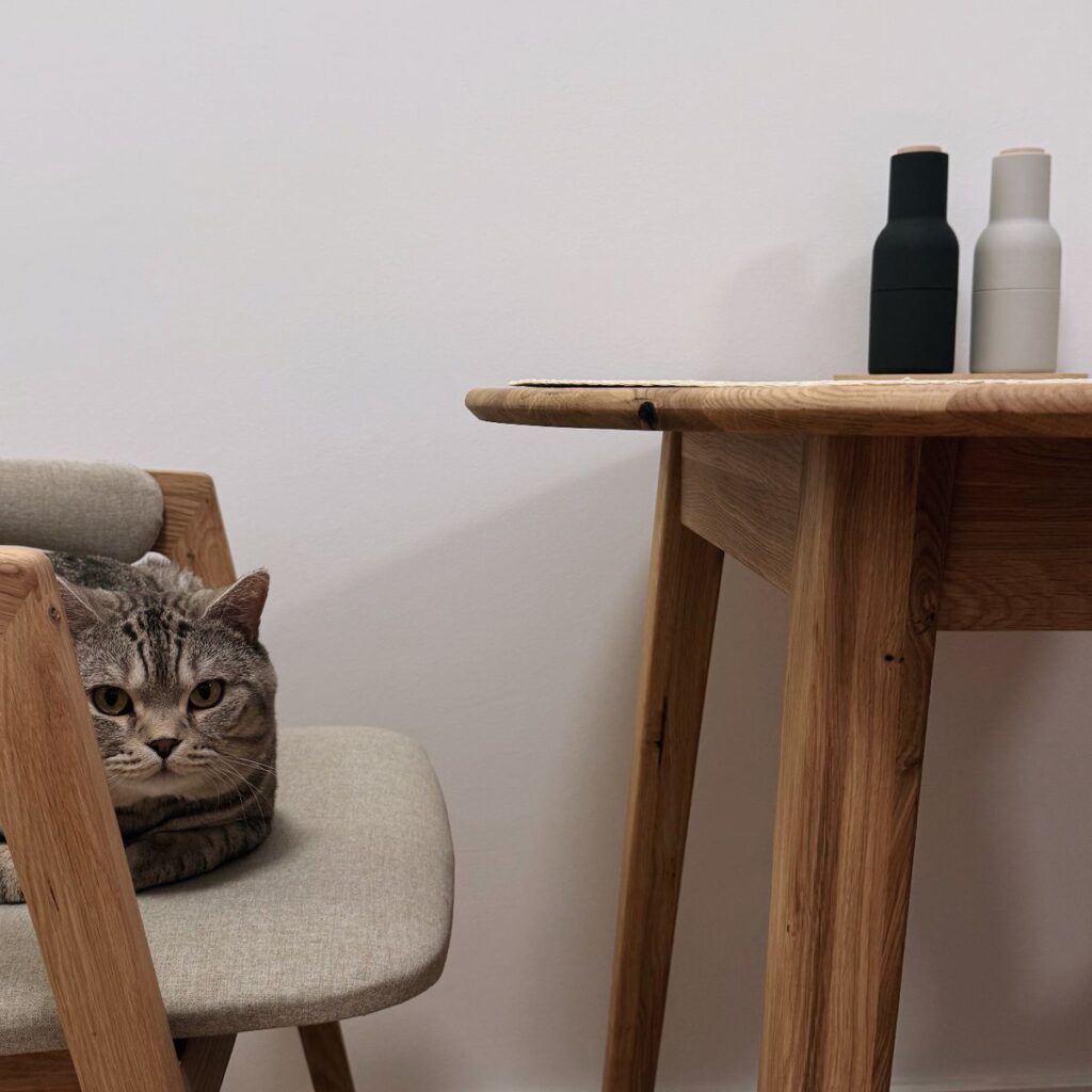 Deska z masivního dubu je ošetřena olejovo-voskovou úpravou, která zvýrazňuje dřevo a chrání povrch. Pro zachování krásy a ochrany je potřeba povrch jednou za čas obnovit přípravky určenými na olejovaný nábytek. Pro každodenní používání je důležité chránit desku před vlhkostí a teplem – vždy používejte podložky pod horké nebo mokré předměty. Přímý kontakt může způsobit skvrny, změnu barvy nebo narušení povrchu. Desku čistěte jemně navlhčeným hadříkem a ihned osušte, vyhněte se agresivním čisticím prostředkům.