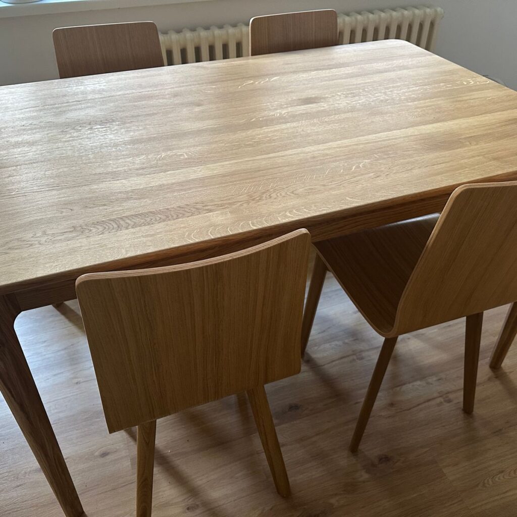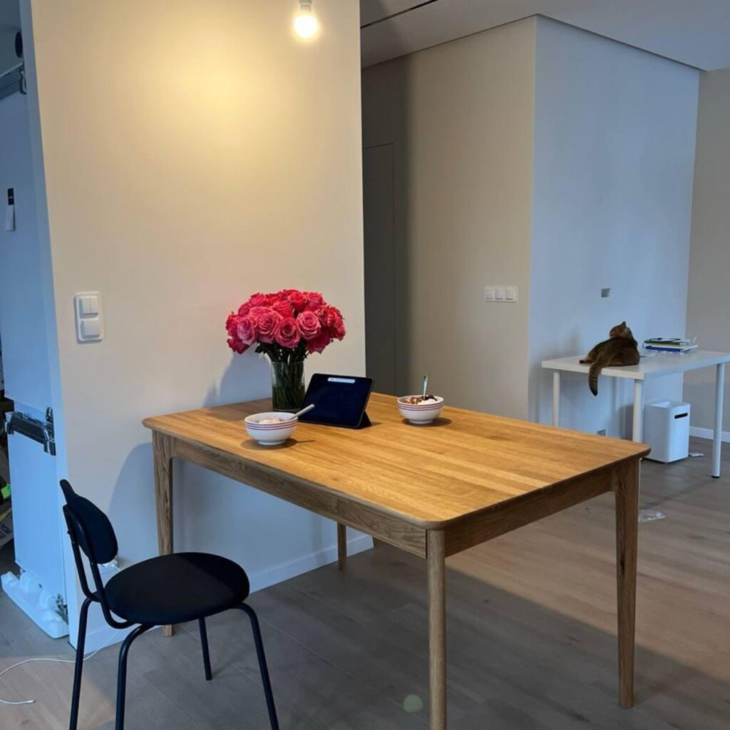 Stůl je dokonale vyroben. Elegantní minimalistická a vyrobená výhradně z dubového dřeva. Doporučujeme