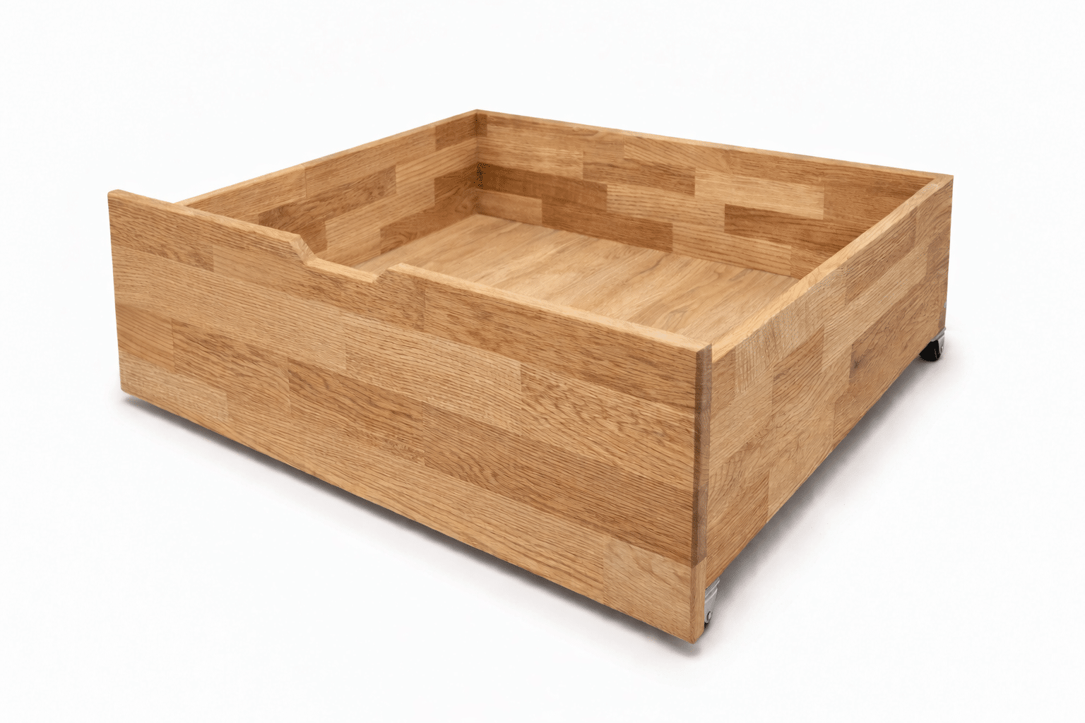 Ideální řešení pro ty, kteří chtějí využít prostor pod postelí na maximum a zároveň zachovat estetiku přírodního masivu.